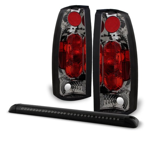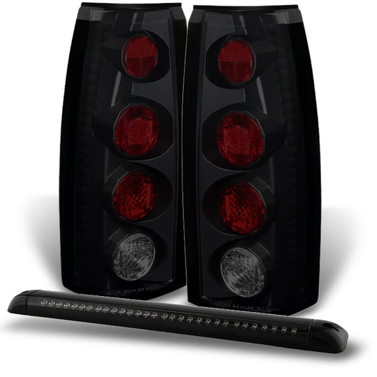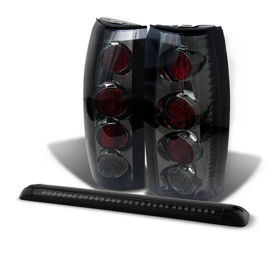 AKKON - For Chevy GMC Suburban | Blazer | Tahoe | Yukon | Escalade Smoked Lens Tail Light + Smoked LED 3rd Brake Lamp