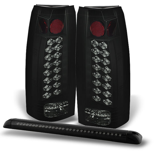 AKKON - For Chevy GMC Suburban/Blazer/Jimmy/Tahoe/Yukon Black Smoked LED Tail Light + Smoke LED 3rd Brake Lamp