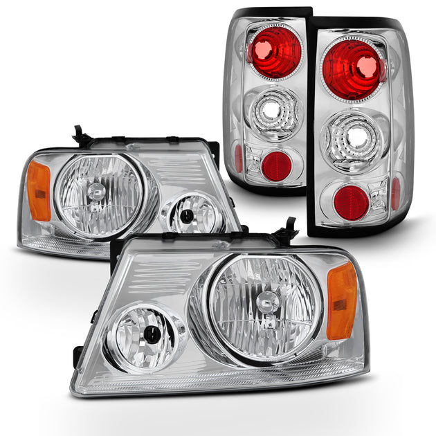 AKKON - Fits 2004-2008 Ford F150 Chrome Headlights + [Styleside Type] Tail Brake Lights Left Driver + Right Passenger Pair