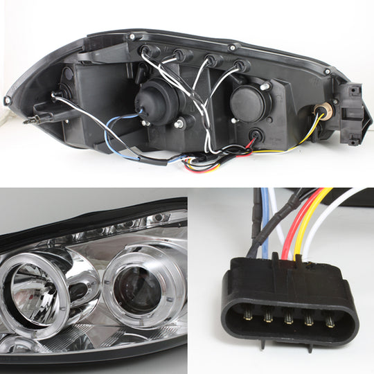 AKKON - For Chevy Impala Monte Carlo Chrome Clear Halo Ring Projector Replacement Headlights Left/Right Lamps