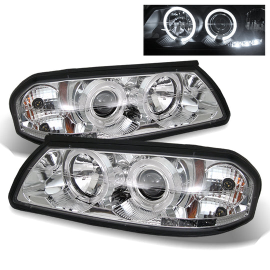AKKON - For Chevy Impala SS Chrome Clear Dual CCFL Halo Ring LED Design Projector Headlights Front Lamps Pair