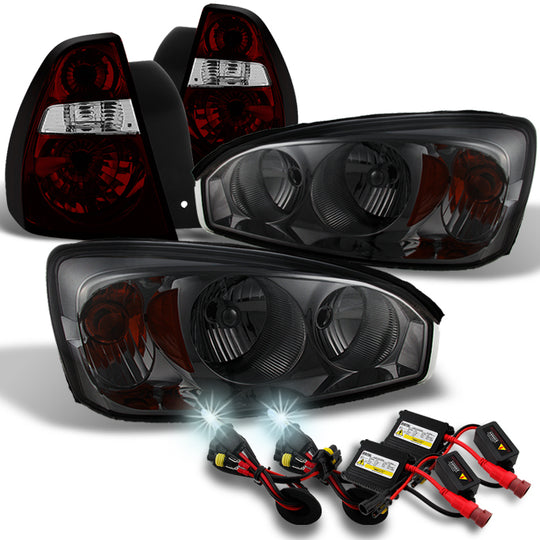 Regular price $293.99This is a 100% brand new pair of Replacement Headlights & Tail Lights with the housing: Headlights: Smoked Lens, Tail Lights: Dark Red With 6000K White Color Slim Ballast HID And it Fits 2004-2007 Chevy Malibu...