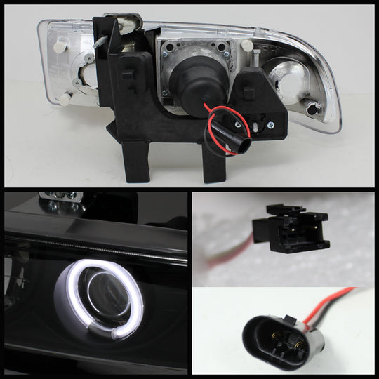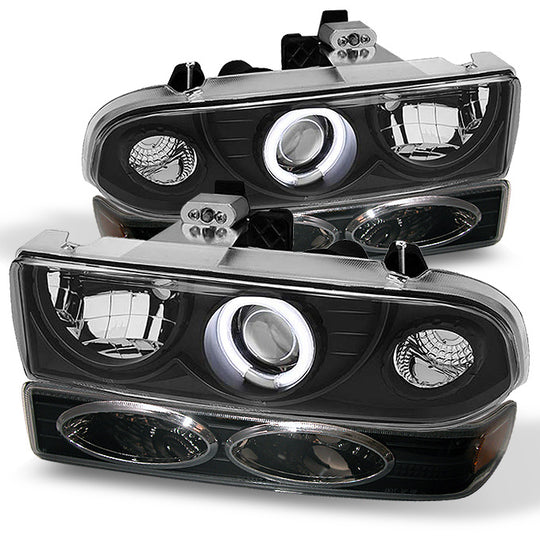 AKKON - For Chevy S10 Blazer Black Bezel Front Halo Projector Headlight + Bumper Signal Lights Lamps Assembly