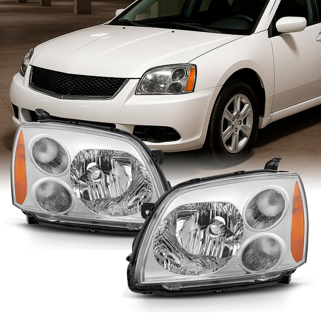 AKKON - Fits 2004-2012 Mitsubishi Galant Chrome Halogen Type (No W/Projector) Headlights Lamps Left+Right Set