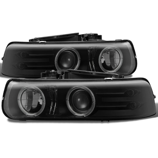 AKKON - For Chevy Silverado Suburban Tahoe Black Smoke CCFL Halo Ring Projector Headlights Pair Replacement