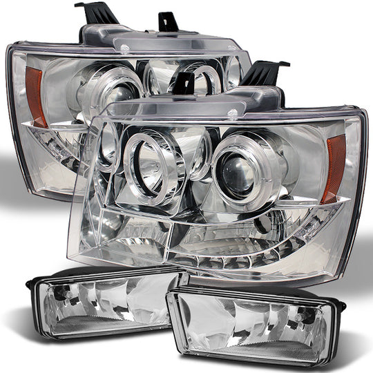 AKKON - For Chevy Suburban 1500 2500 Tahoe Avalanche Chrome Halo Projector LED Headlights + Fog Lights