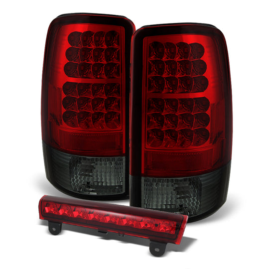 AKKON - For Chevy Suburban Tahoe Denali Red Smoked LED Tail Lights Brake Lamps + Full LED 3rd Third Brake Lamp