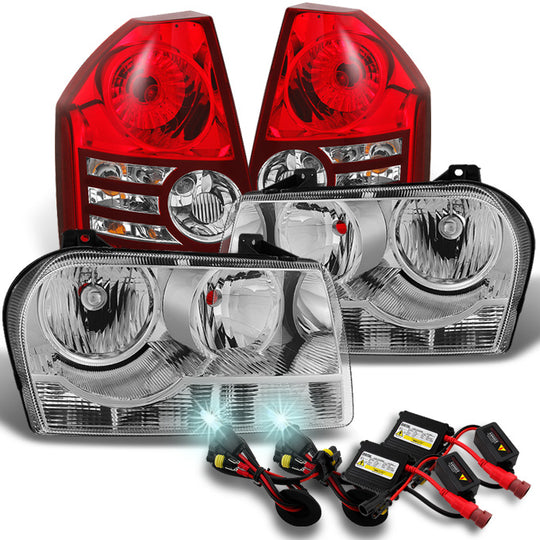 Regular price $214.99This is a 100% brand new pair of Replacement Headlights & Tail Lights with the housing: Headlights: Chrome Housing, Tail Lights: Red Clear With 6000K White Color Slim Ballast HID And It Fits 08-10 Chrysler 300... -