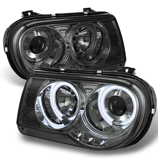 AKKON - For Chrysler 300C Sedan Halogen Type Smoked Smoke Dual CCFL Halo Ring LED Projector Headlights Lamp Pair