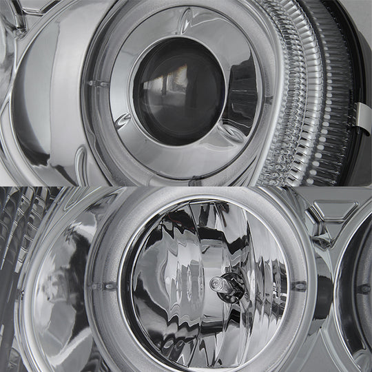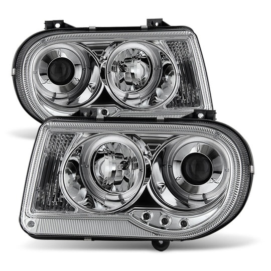 AKKON - For Chrysler 300C Sedan Halogen Type Chrome Clear Dual Halo Rings Design Projector Headlights Lamps Pair