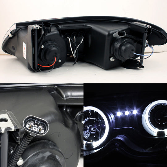 AKKON - For Chrysler 300M Black Bezel Dual Halo Ring LED Design Projector Headlights Front Lamps Replacement