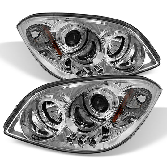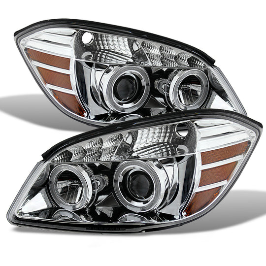 AKKON - For Cobalt Pontiac G5 Pursuit Chrome Clear Halo Ring LED Projector Headlights Driver/Passenger Pair Set