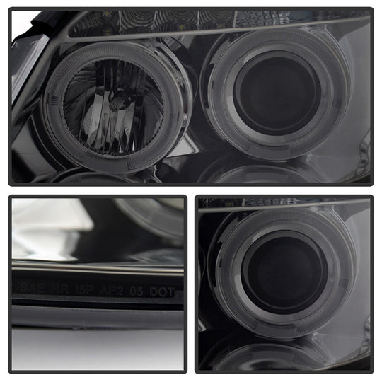AKKON - For Cobalt Pontiac G5 Pursuit Black Smoke Halo Ring LED Projector Headlights Driver/Passenger Pair Set