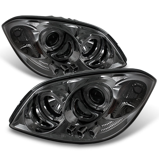 AKKON - For Cobalt Pontiac G5 Pursuit Smoke Halo Ring LED Projector Replacement Headlights Driver/Passenger Lamp