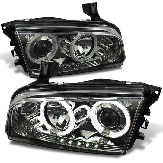 AKKON - For Dodge Charger All Model Smoked Dual CCFL Halo Projector LED Headlights+ Black Corner Signal Lamps