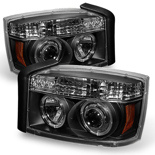 AKKON - For Dodge Dakota Pickup Truck Black Bezel Dual Halo Ring Design Projector Headlights Front Lamps Pair