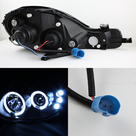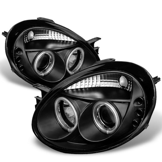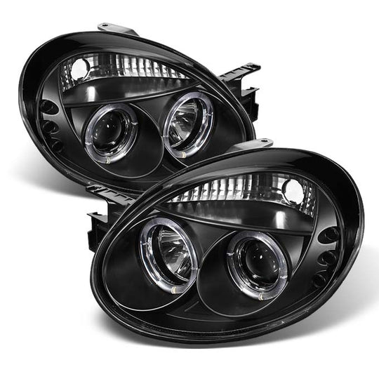 AKKON - For Dodge Neon Plymouth Neon Black Bezel Dual Halo Ring Design Projector Headlights Lamps Replacement