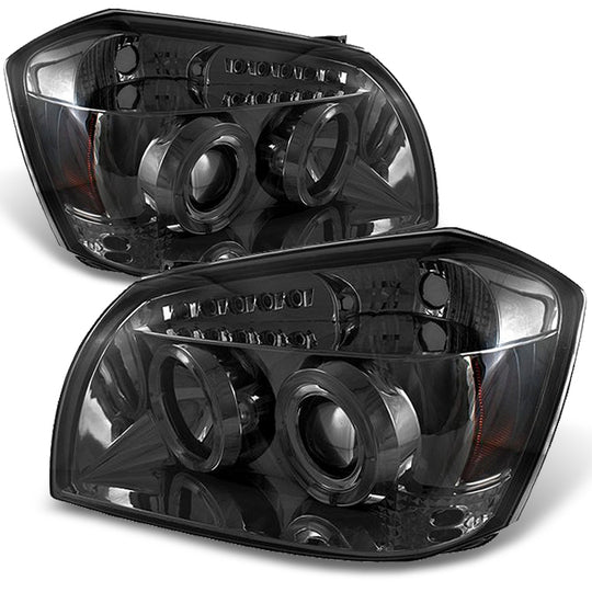 AKKON - For Dodge Magnum Smoked Smoke Dual Halo LED Projector Headlights Driver/Passenger Replacement Lamps