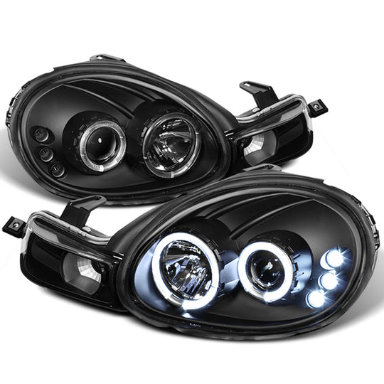 AKKON - For Dodge Neon Black Bezel Dual Halo LED Projector Headlights Driver/Passenger Replacement Lamps Pair