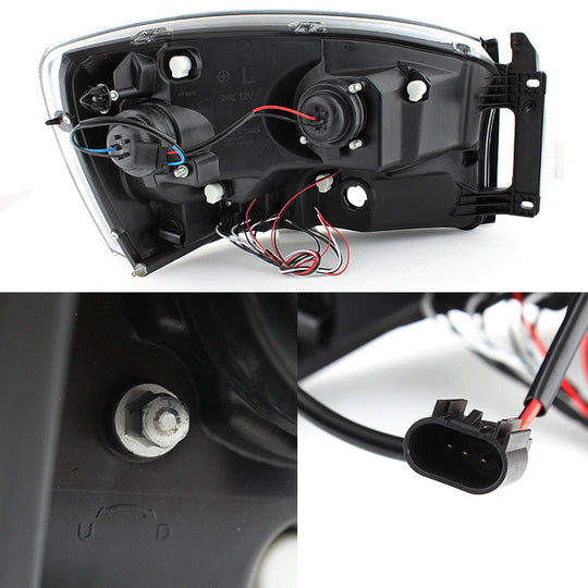 AKKON - For Dodge Ram 1500 2500 3500 Black Dual Halo Projector Headlights + Black LED Perform Tail Lamps Combo