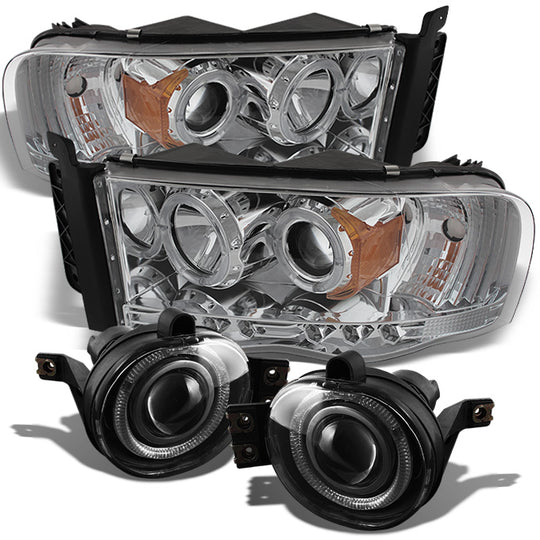 AKKON - For Dodge Ram 1500 2500 3500 Chrome Dual Halo Projector LED Headlight+Halo Projector Fog Lights W/Switch