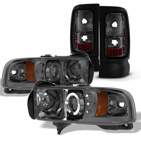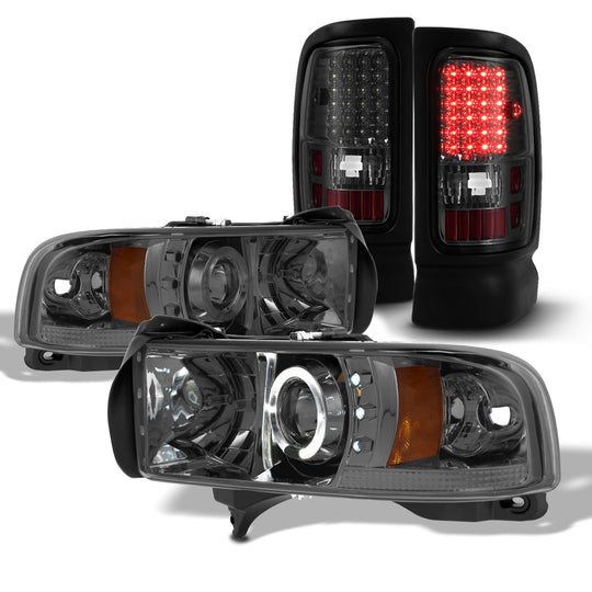 AKKON - For Dodge Ram 1500/2500/3500 Pickup Smoke Halo Ring LED Projector Replacement Headlights+Tail Light