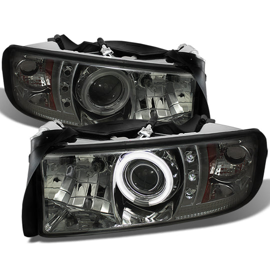 AKKON - For Dodge Ram 1500/2500/3500 Pickup Smoke CCFL Halo Ring LED Projector Replacement Headlights Left/Right