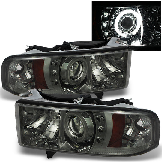 AKKON - For Dodge Ram 1500/2500/3500 Sport Smoke CCFL Halo Ring LED Projector Replacement Headlights Left/Right