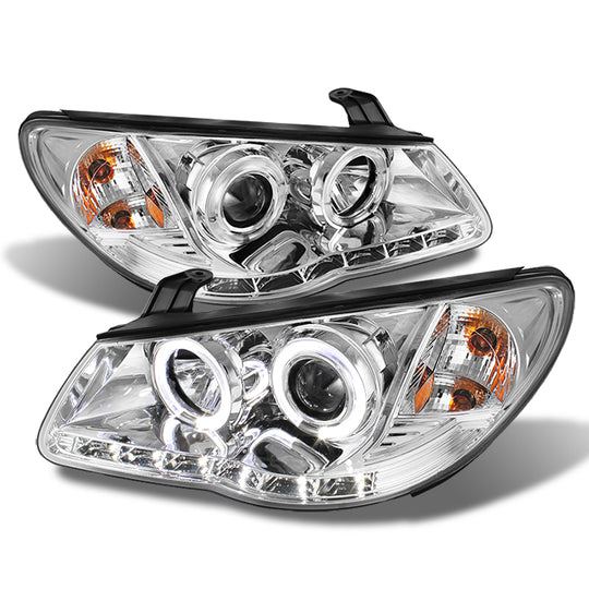 AKKON - For Elantra Chrome Clear Dual Halo DRL Daylight LED Strip Projector Headlights Front Lamps Left + Right