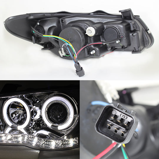 AKKON - For Elantra Black Bezel Dual Halo DRL Daylight LED Strip Projector Headlights Front Lamps Replacement