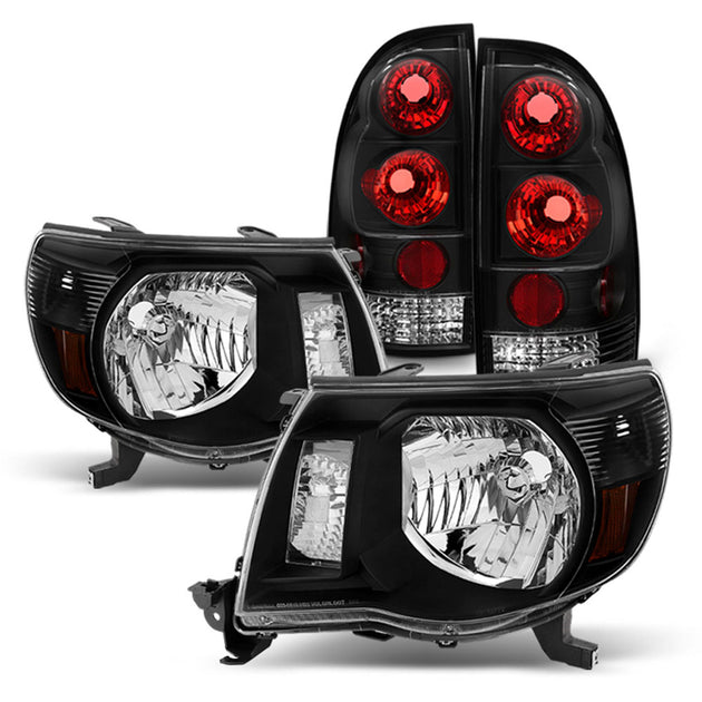 AKKON - Fits 2005-2011 Toyota Tacoma Pickup Truck Black Headlights + Blk Bezek Rear Tail Brake Lamp Pair Left+Right