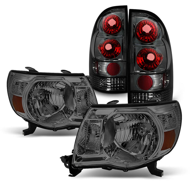 AKKON - Fits 2005-2011 Toyota Tacoma Pickup Truck Smoked Headlights + Smoke Rear Tail Brake Lamp Pair Left+Right