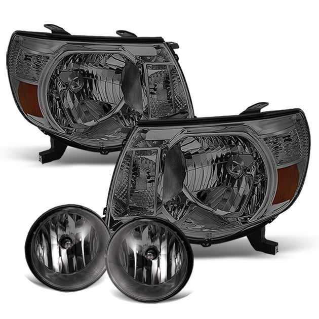 AKKON - Fits 2005-2011 Toyota Tacoma Pickup Truck Smoked Headlights + Smoke Fog Lamps Pair Left+Right Replacement
