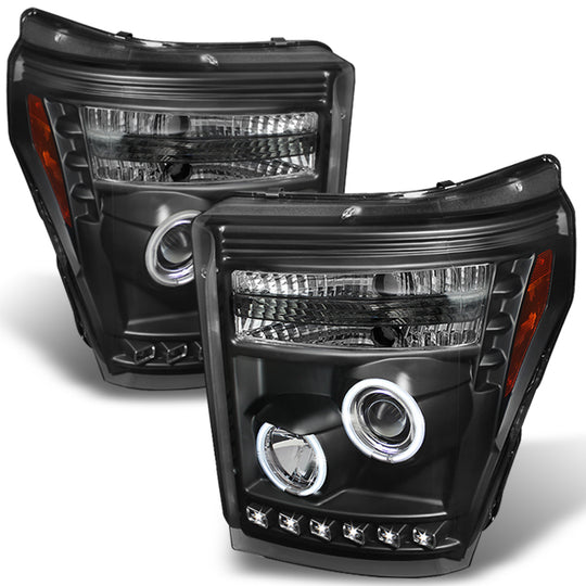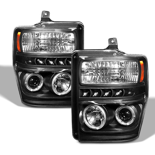 AKKON - For F-Series SuperDuty Pickup Truck Black Bezel CCFL Halo Ring LED Projector Headlights Replacement