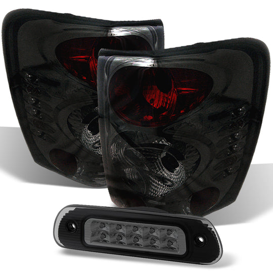 AKKON - For For 1999-2004 Jeep Grand Cherokee All Models Smoked Tail Lights+Smoked Rear LED 3Rd Brake Lamp