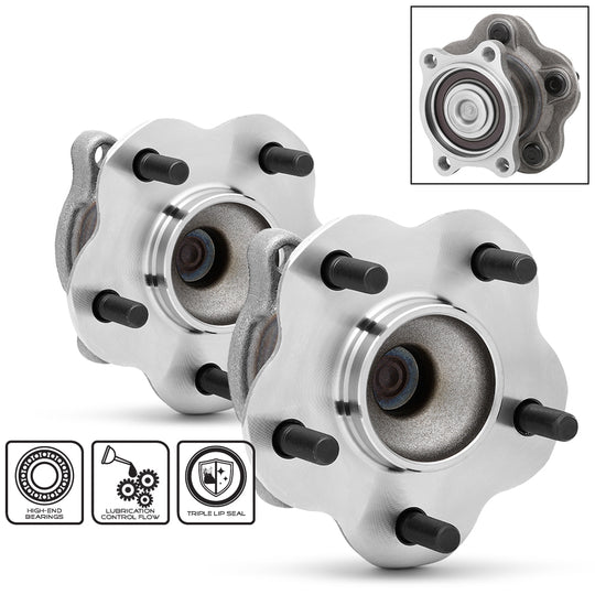 Regular price $57.99This is a 100% Brand New Wheel Hub and Bearing Assembies that Come with 2x Hub & Bearing Assembly, Lug Bolts (Already installed) Compatible With: 2002-2006 Altima 2004-2008 Maxima 2004-2009 Quest ***Compatible on Rear Wheels Only***...