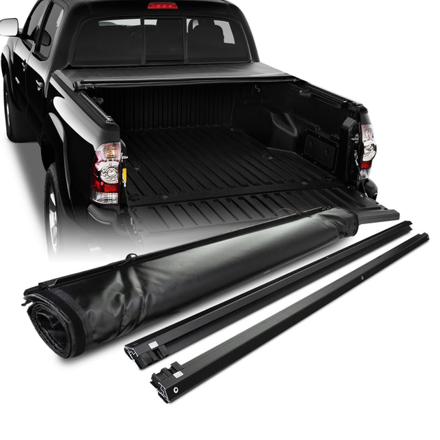 AKKON - Fits 2005-2015 Toyota Tacoma Crew / Extended Cab Pickup 5 Feet 60 Inch Bed Black Soft Roll Up Tonneau Cover & Hardware