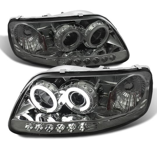 AKKON - For Ford F150 Expedition Pickup Smoked Smoke CCFL Halo LED 1 Piece Projector Replacement Headlights Pair