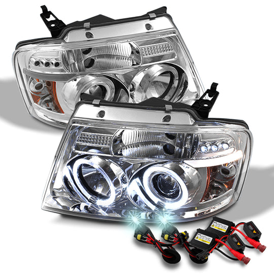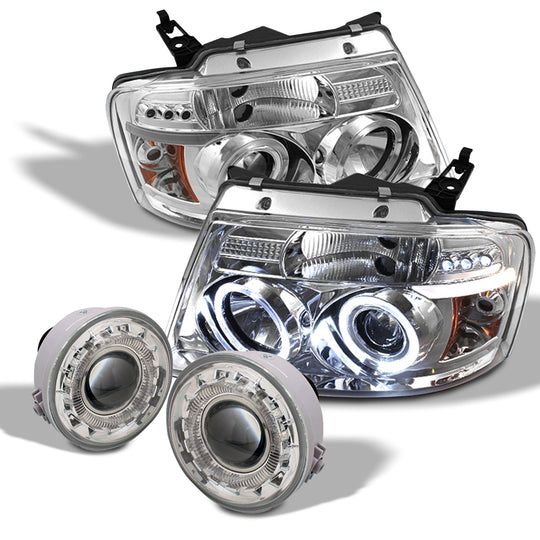 Regular price $166.96This is a 100% brand new pair of Headlights Replacement Assemblies in Polished Chrome Housing With Crystal Clear Lens + 6000K HID Compatible With: 2004-2008 Ford F-150 2006-2008 Lincoln Mark LT Attention: Not Compatible on 2004... -