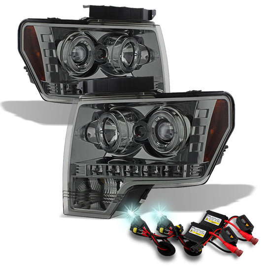 AKKON - For Ford F150 F-150 Pickup Chrome Clear Dual Halo LED G2 Projector Headlights Replacement + 6000K HID