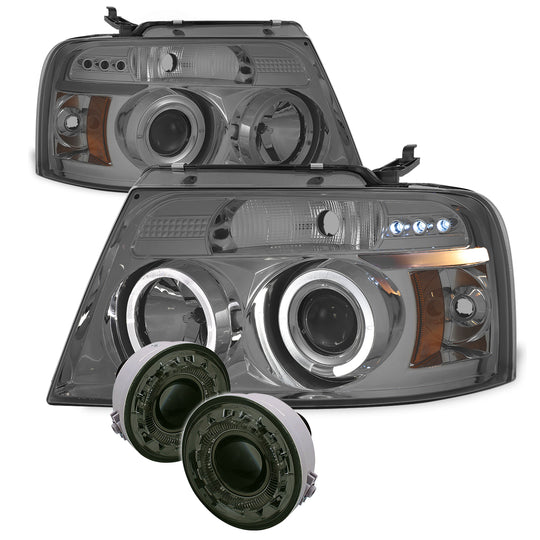 AKKON - For Ford F150 F-150 Pickup Smoked Smoke CCFL Halo LED G2 Projector Headlights Front Lamps Replacement
