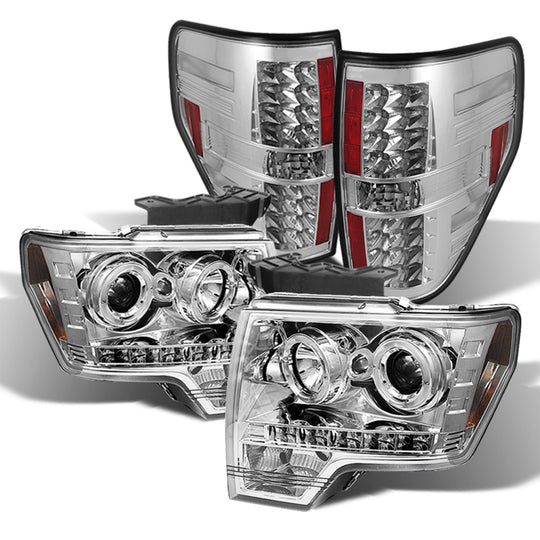 Regular price $323.99This is a 100% brand new pair of Headlights and Tail light Replacement Assemblies in Polished Chrome Housing With Crystal Clear Lens Compatible With: 2009-2014 Ford F-150 Attention: Not Compatible on 2013-2014 F-150 Limited, Platinum, or... -