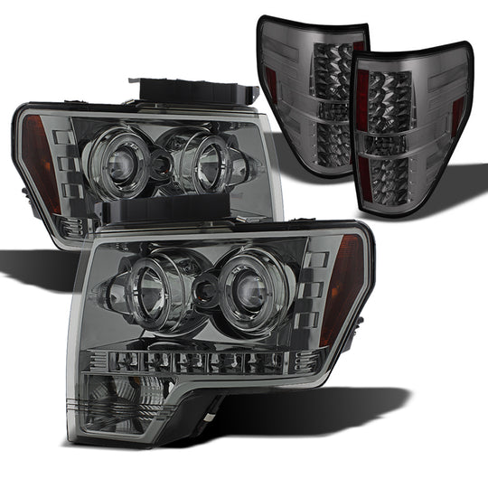 AKKON - For Ford F150 F-150 Pickup Smoked Bezel Dual Halo LED Projector Headlights+LED Tail Lamp Assembly