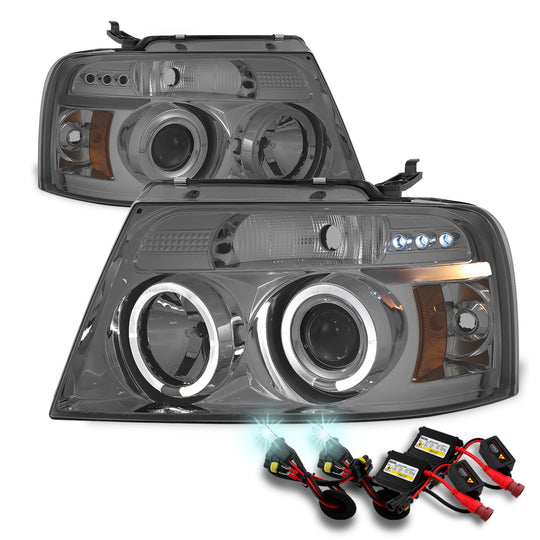 AKKON - For Ford F150 F-150 Pickup Smoked Smoke Dual Halo LED G2 Projector Headlights Front Lamps Replacement + 8K HID
