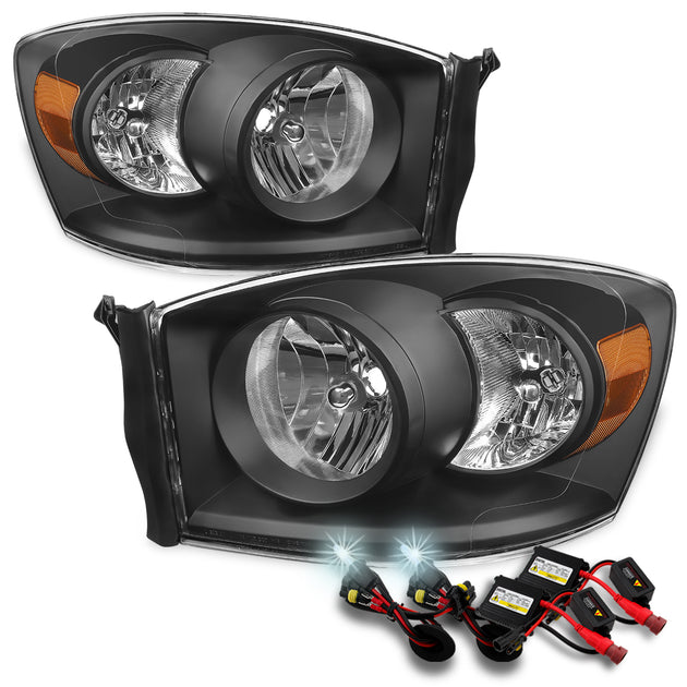 AKKON - Fits 2006-2009 Dodge Ram 1500 2500 3500 Pickup Truck Black Headlights + Slim Ballast 6000K Blue/White HID Kit Set Pair