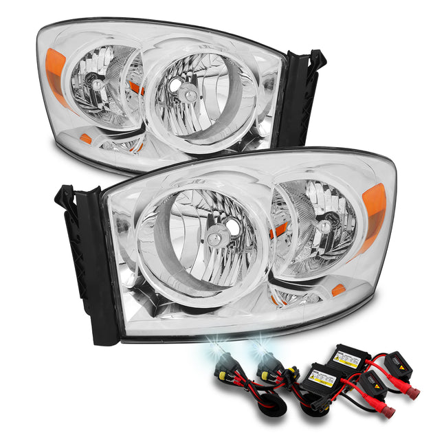 AKKON - Fits 2006-2009 Dodge Ram 1500 2500 3500 Pickup Truck Chrome Headlights + Slim Ballast 6000K Blue/White HID Kit Set Pair