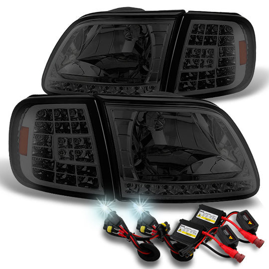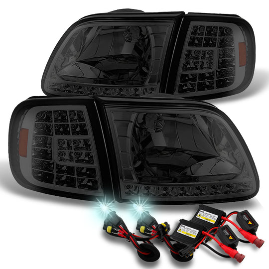 AKKON - For Ford F150 F250 Heritage Expedition Smoke Headlights Corner Lamps +6000K White Slim HID Xenon Kit