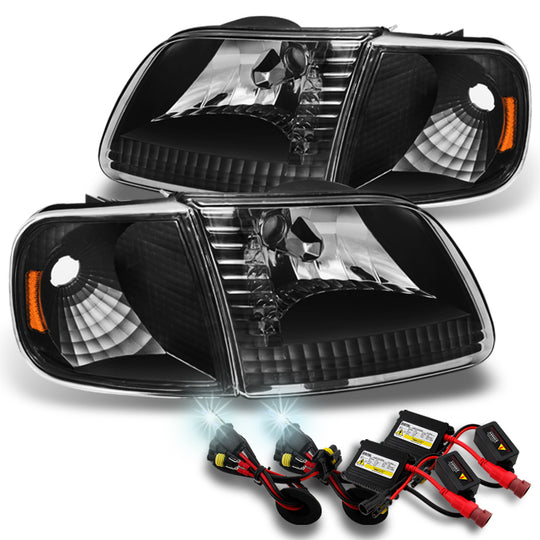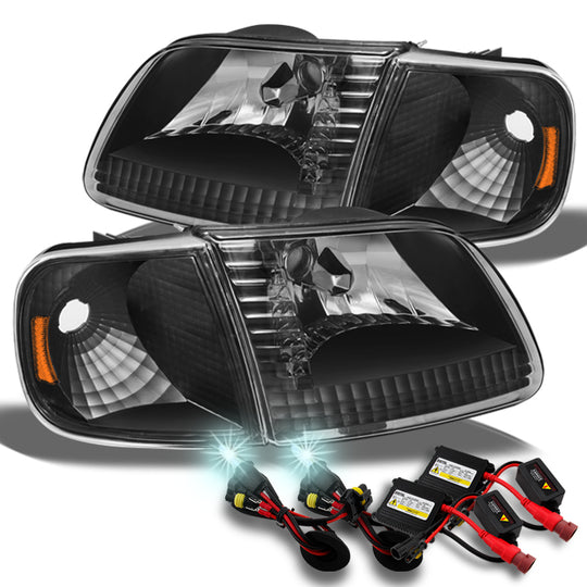 Regular price $97.99This is a 100% brand new pair of Headlights Replacement Assemblies with HID Conversion Kit in Midnight Black Housing With Crystal Clear Lens Compatible With: 97-03 Ford F-150 97-99 Ford F-250 Light Duty 04 Ford F-150... -
