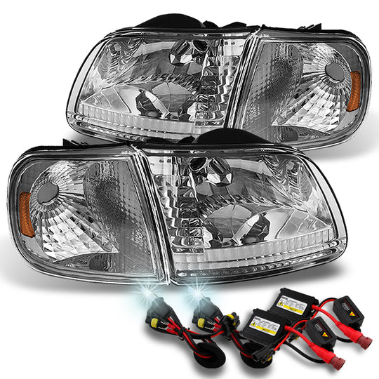 Regular price $104.88This is a 100% brand new pair of Headlights Replacement Assemblies with HID Conversion Kit in Polished Chrome Housing With Crystal Clear Lens Compatible With: 97-03 Ford F-150 97-99 Ford F-250 Light Duty 04 Ford F-150... -