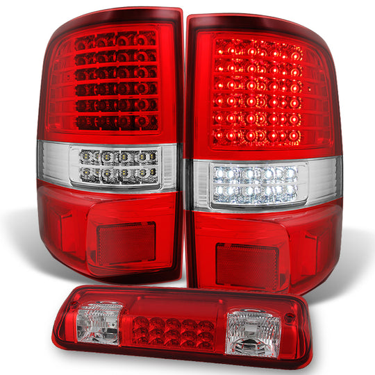 AKKON - For Ford F150 Styleside Pickup Generation II Full LED Red Clear Tail Lights + Red LED 3Rd Brake Light